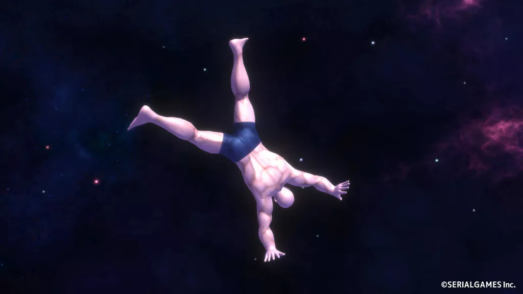 どうしてマッチョが宇宙にいるのか、どうして側転をするのか、そんなことを気にしている暇はありません。